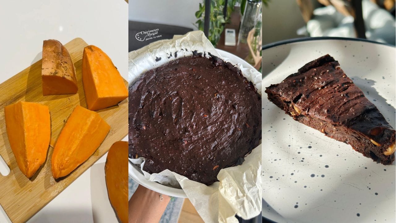 En la casa pensé qué podía hacer con ella y se me ocurrió crear un brownie, usando el camote como base.